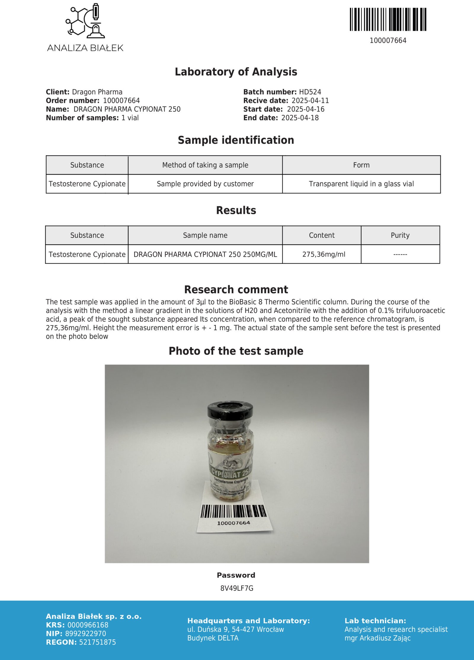 Dosage: Typical dosage for bodybuilding is 250–750 mg/week (1–3 ml), injected 1–2 times weekly. Beginners should start at 250–500 mg/week to assess tolerance. For TRT, 100–200 mg every 7–10 days is common, under medical guidance.