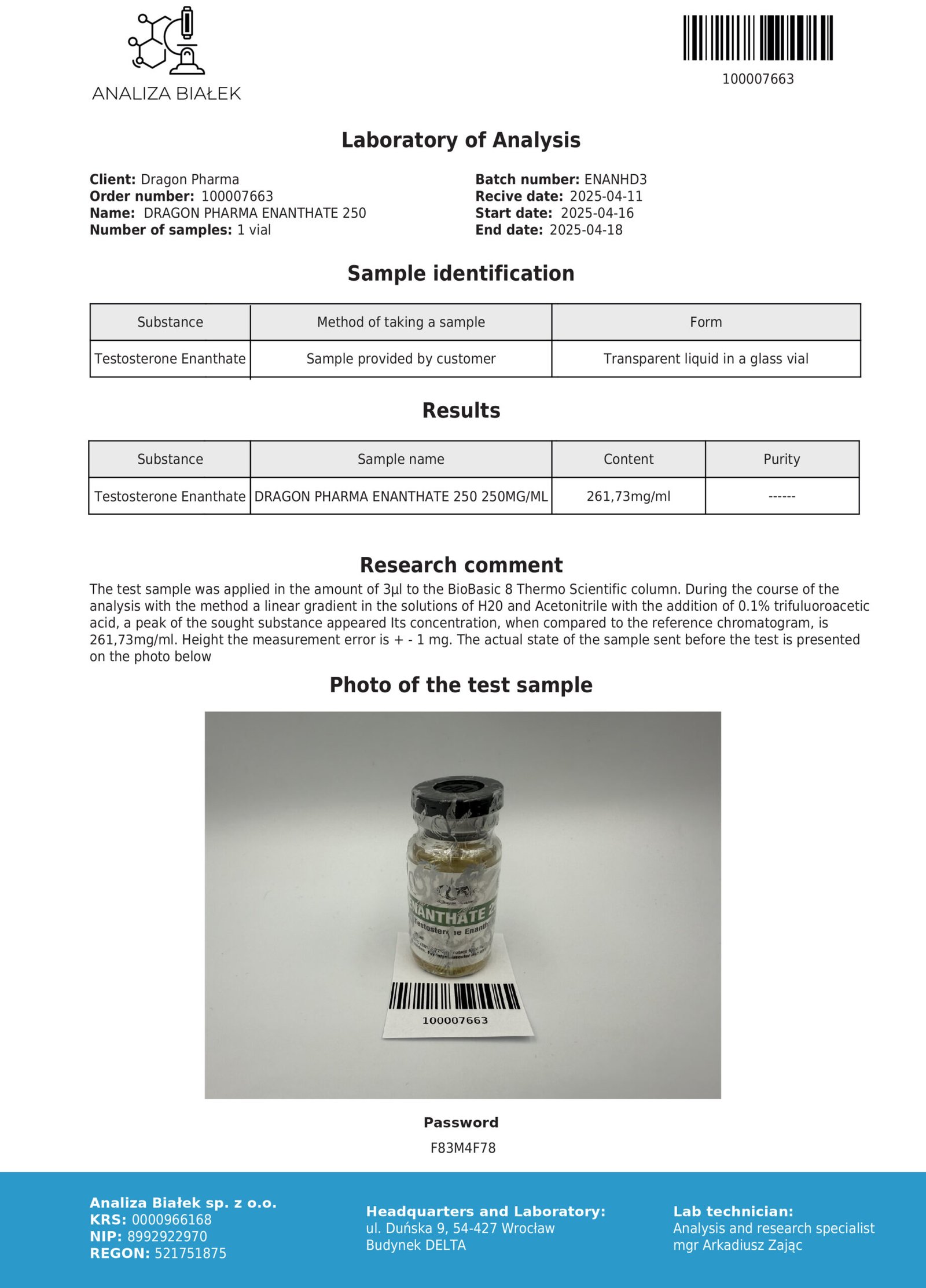 Enantat 250 by Dragon Pharma contains Testosterone Enanthate, a long-acting injectable anabolic-androgenic steroid (AAS) widely used for muscle growth, strength gains, and testosterone replacement therapy (TRT). With a half-life of approximately 8–10 days, it provides sustained testosterone release, promoting significant muscle mass, enhanced recovery, and improved vitality. It’s a cornerstone for bodybuilders and men seeking to optimize their physique and hormonal health.